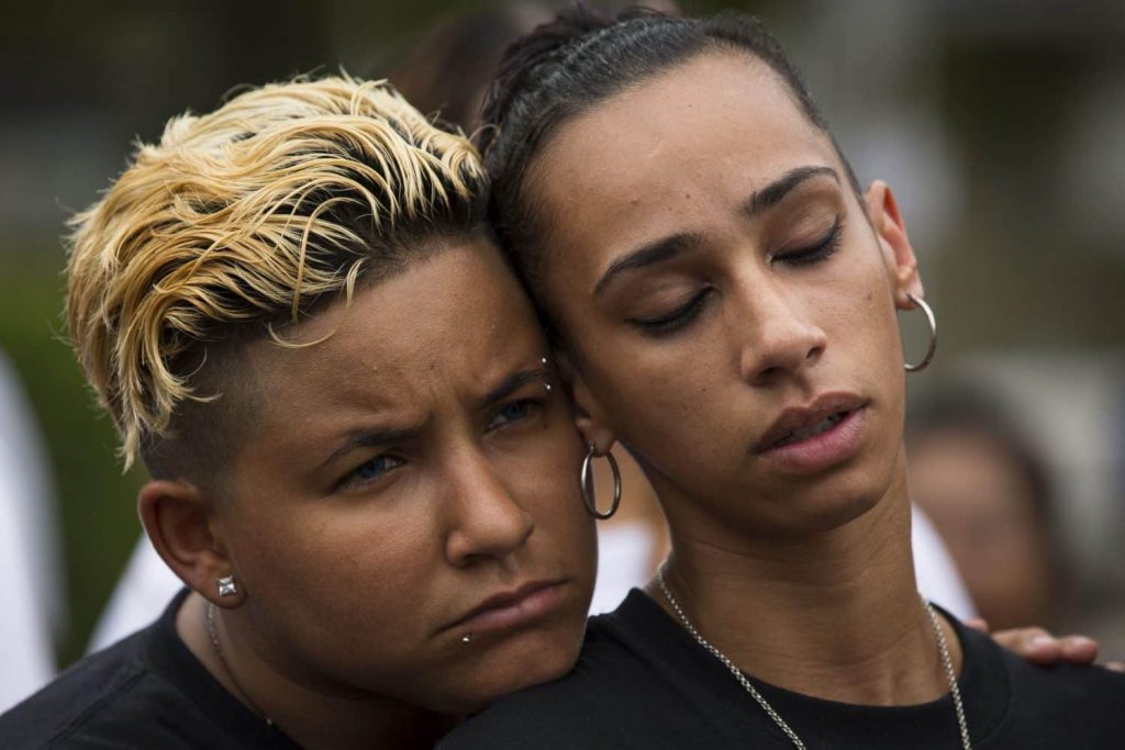 At 2:02 a.m., survivors, victims’ families, club employees and local officials were gathered for a private service at the gay club at the exact time Omar Mateen opened fire a year ago and pledged allegiance to the Islamic State. He was eventually killed by police after a three-hour standoff on June 12, 2016.