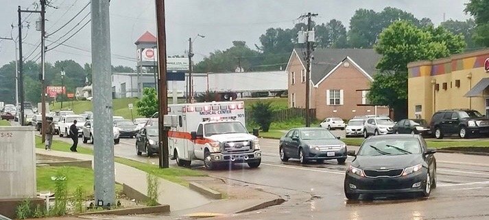 No injuries were reported, but two vehicles – one an ambulance with Medical Center EMS – were involved in an accident on Ridgecrest Road near North Highland Avenue.