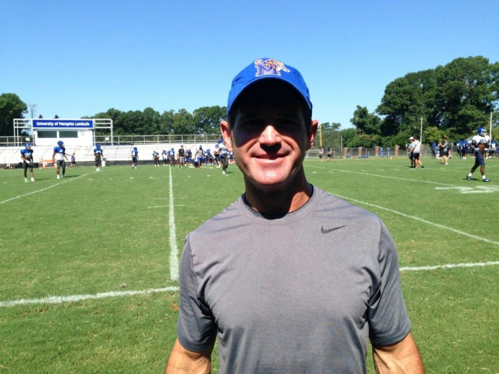 Adam English was one of several alums strolling the sidelines while the University of Memphis practiced at L.L. Fonville Field on the campus at the University of Memphis Lambuth.