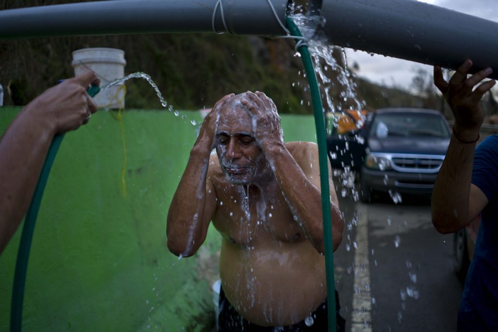 Nearby, 25-year-old Jorge Ortiz was taking a shower on the side of the road using well water. “People come to get water for their families. The children are bathing and neighbors are cooking,” he said. “Apart from the bad experience of the hurricane, is something that is uniting us.”