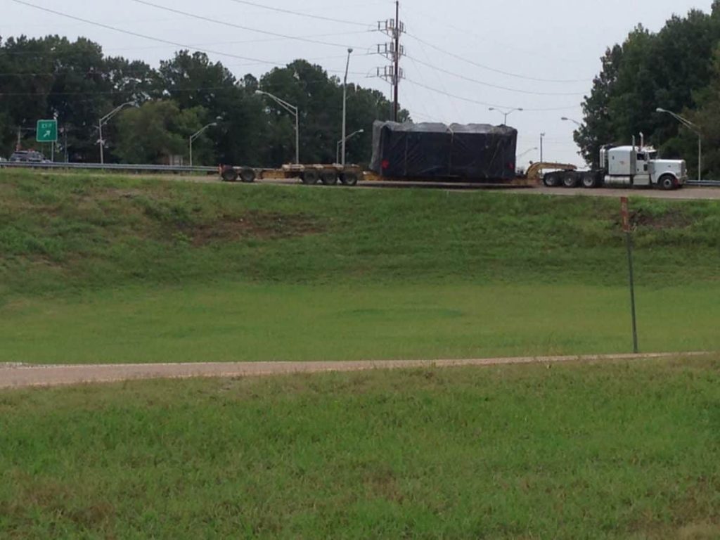 (PHOTO: A tractor trailer is unable to navigate the off ramp navigate the northbound ramp off the Highway 45 Bypass entering onto Hollywood Drive, Tuesday)