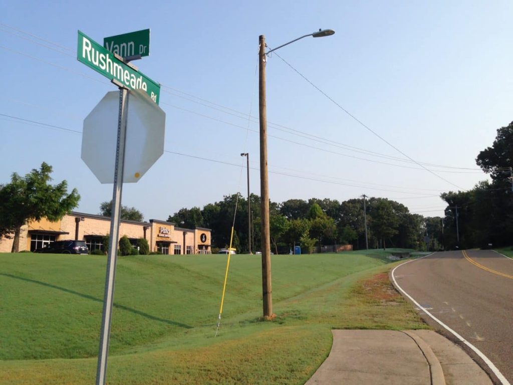 (PHOTO: Rushmeade Road at Vann Drive is near Gander Outdoors and Le Bonheur Children’s Outpatient Center in the Columns)
