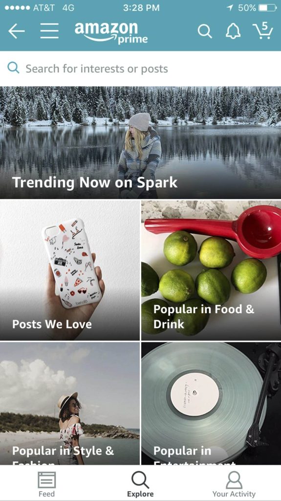 The new service, called Spark, essentially takes Amazon Prime, mixes it with Pinterest and adds a dash of Instagram. Like Pinterest, it lets users share photo-heavy posts about their interests, ideally those leading to shopping.