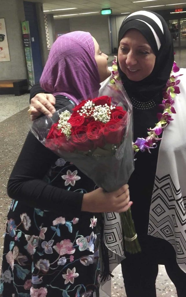 Wafa Yahia received approval from the U.S. government several weeks ago, according to her son-in-law, Ismail Elshikh, the imam of a Honolulu mosque. She arrived Saturday night, after a 28-hour journey that began in Lebanon.