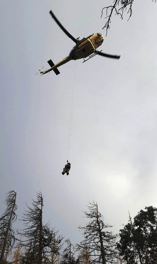 The incident Saturday in the remote Piute Mountains about 85 miles (137 kilometers) north of Los Angeles occurred after hiker Charles Brandenburg became dehydrated in scorching heat and activated a rescue device that allowed him to send text messages to authorities.