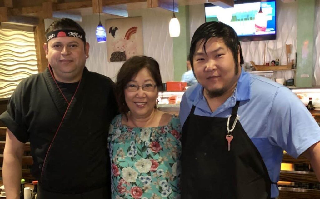 (PHOTO: Eddie Yeh, who owns Asia Garden, right, is pictured with his mother, Kathy Yeh, center and Alfredo Castano, head Sushi chef)