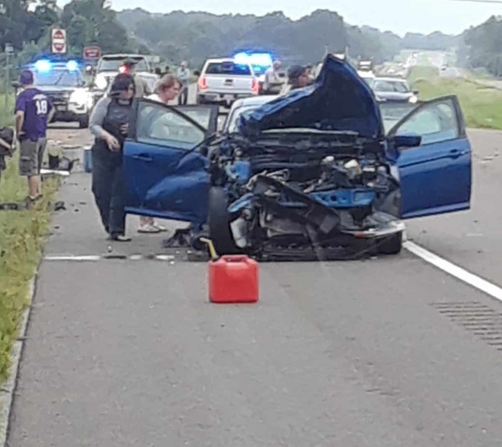 (PHOTO: Automobile accident on Highway 412 E between Jackson and Bells – courtesy Danny Keith, NEWS/TALK 101.5 FM)