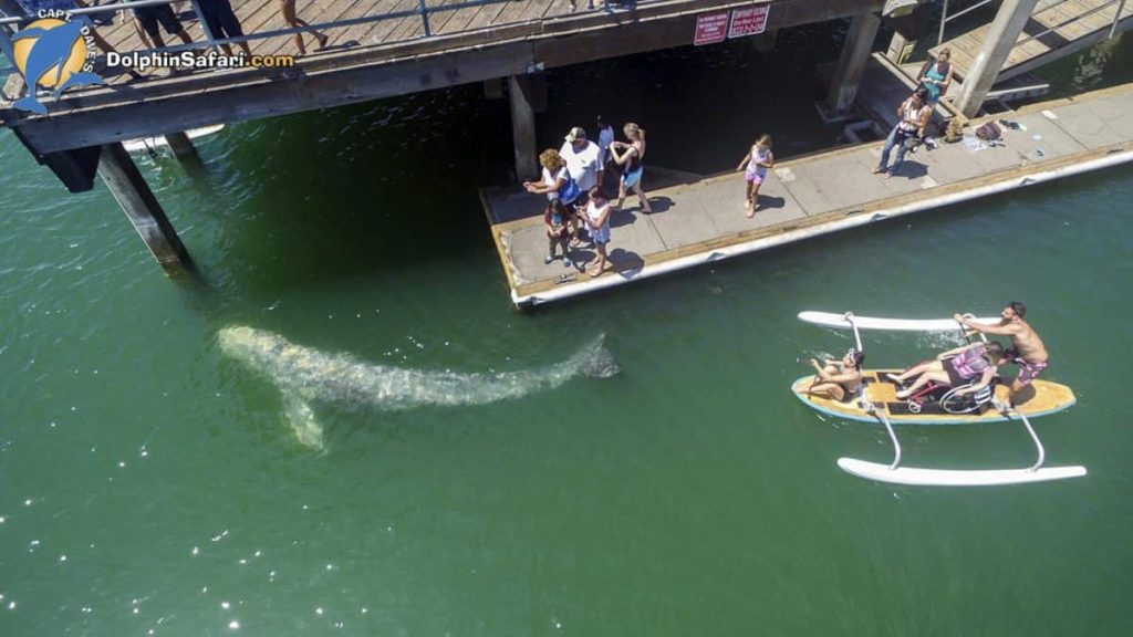 Kayakers were able to get within a few feet of the animal, which at one point swam under paddleboarders.