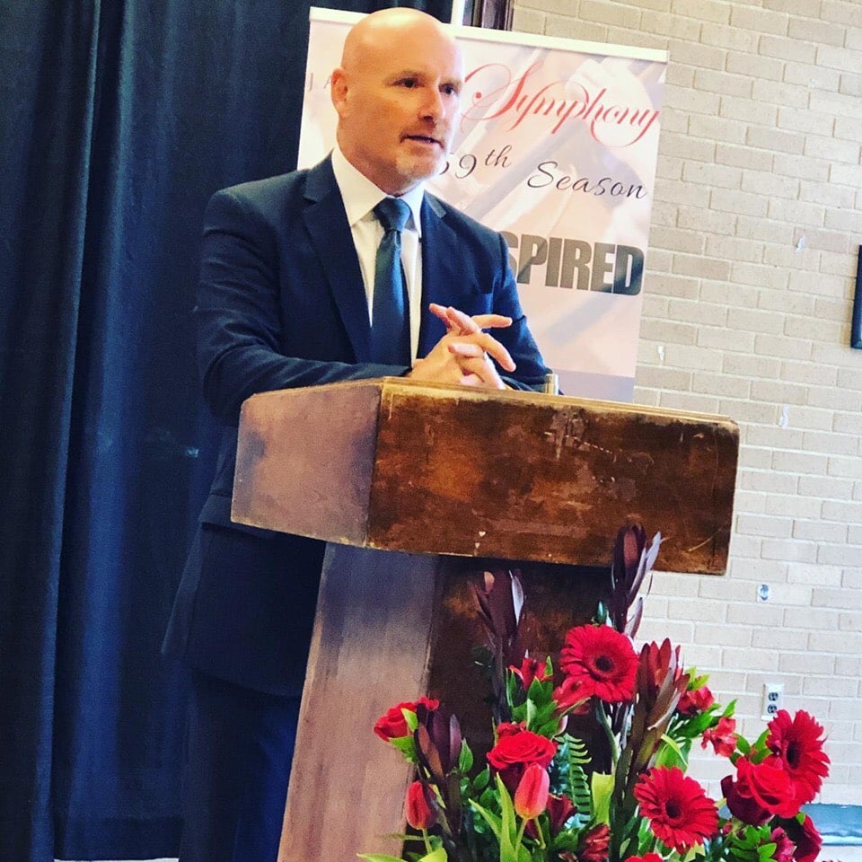 (PHOTO: Peter Shannon, conductor of The Jackson Symphony, discusses the 59th Season during a press conference at the Carl Perkins Civic Center)