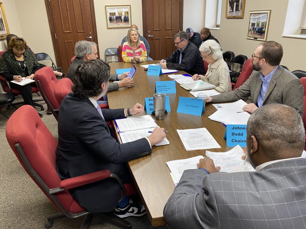 (PHOTO: Elizabeth Stokes, center, is approved for a special occasion permit during the Beer Board’s monthly meeting)