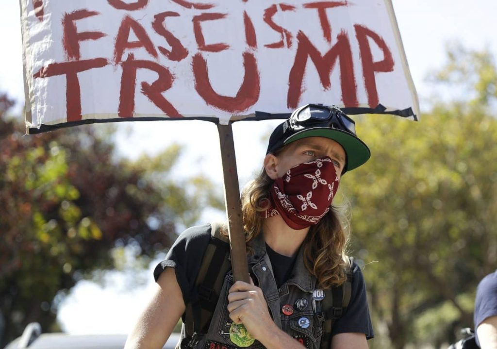 “I’m not safe to walk down the road with an American flag in this county,” she said to reporters in Berkeley last week, her face covered with a bandana to make a point about masked anti-fascist members.