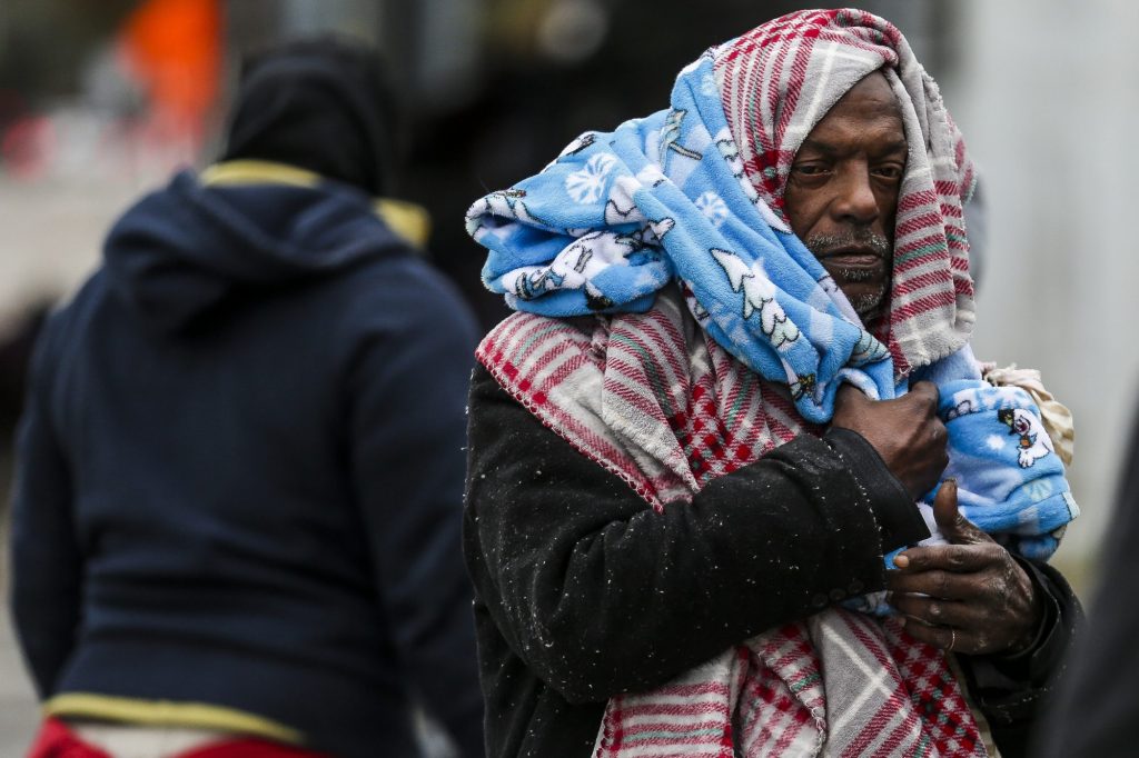 In Texas, advocates for the homeless fanned out Tuesday across Houston to provide blankets and other warm gear as the National Weather Service issued a hard freeze warning until Wednesday for parts of the state.
