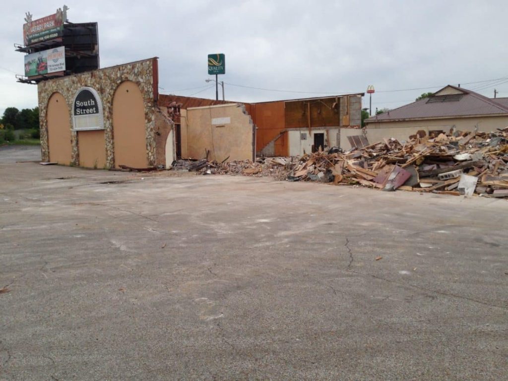 (PHOTO: Demolition continues at the former home of Baudo’s Restaurant, 559 Wiley Parker Road)