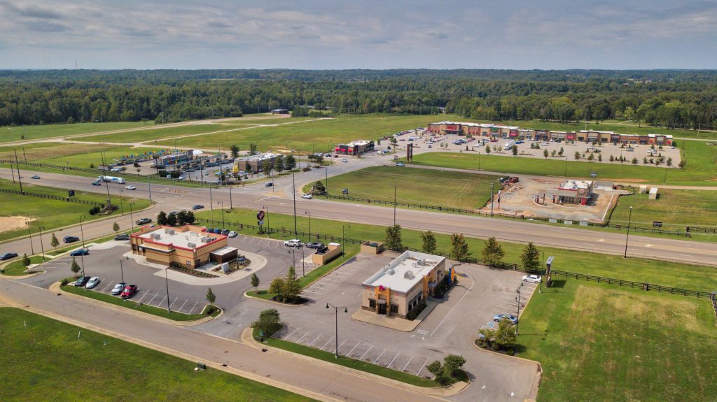 (Drone photograph courtesy of Wes Harris, State Farm Insurance, 319 Vann Drive. Burger King is pictured in Park Place West across Dr. F.E. Wright Drive from Taco Bell and Jack’s)