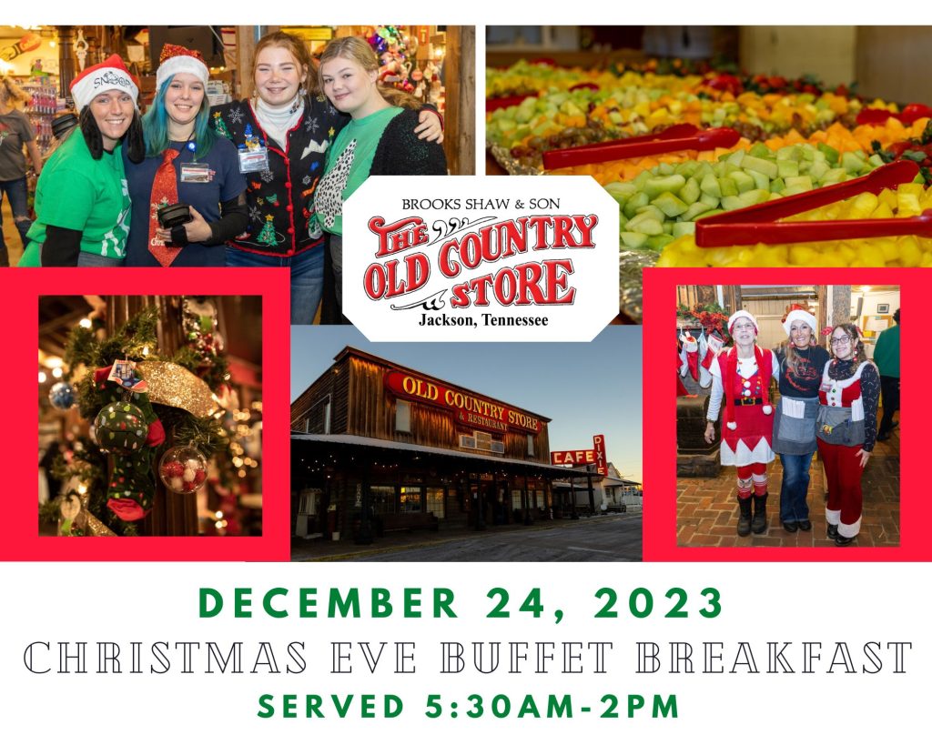 The 39th Annual all you care to enjoy Christmas Buffet will be held from 5:30 a.m. – 2 p.m., Sunday, December 24 at The Old Country Store.