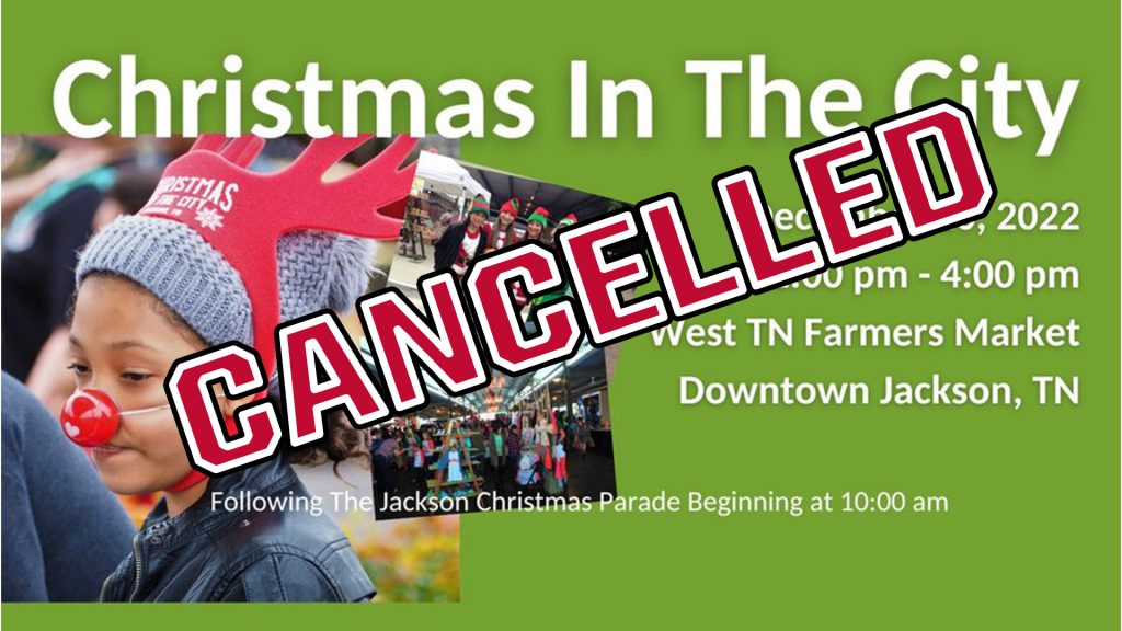 Due to expected inclement weather Saturday, and the shift of Jackson’s Christmas parade to Monday night, organizers of Jackson’s annual “Christmas In The City” event at the West Tennessee Farmers Market have now cancelled the event that was planned for Saturday afternoon.