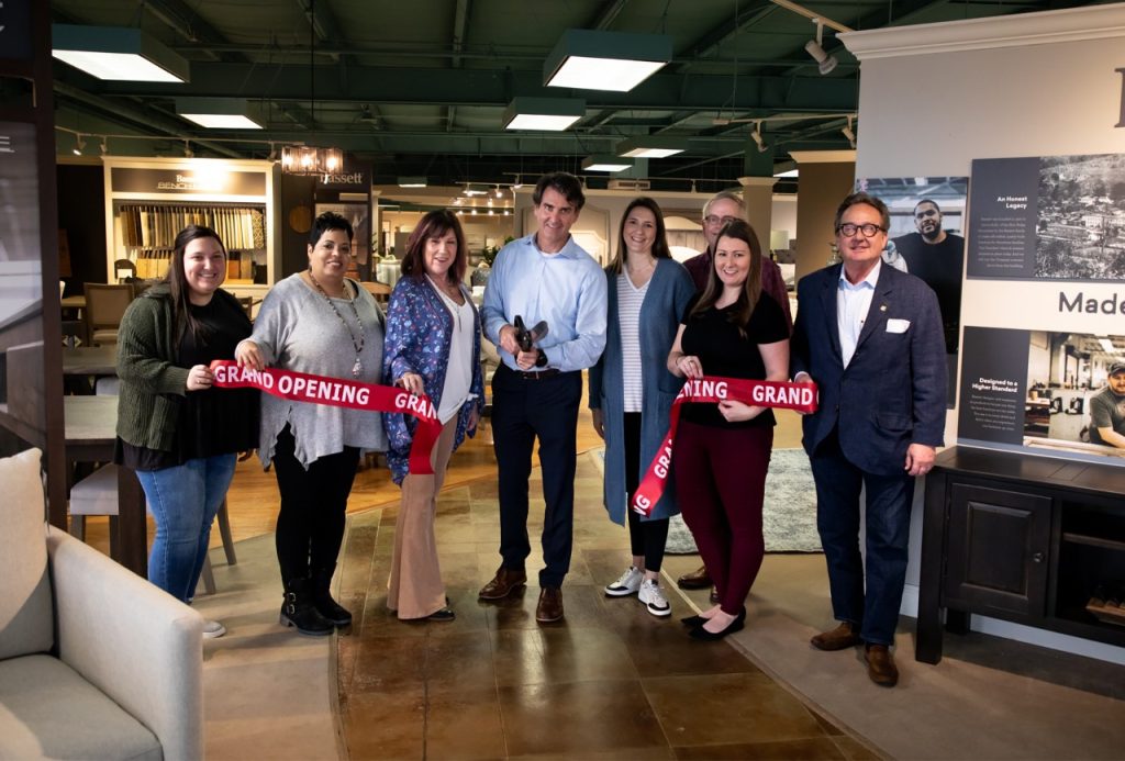 (PHOTO: Coffman’s team members and representatives from Bassett celebrate the showroom’s expansion)