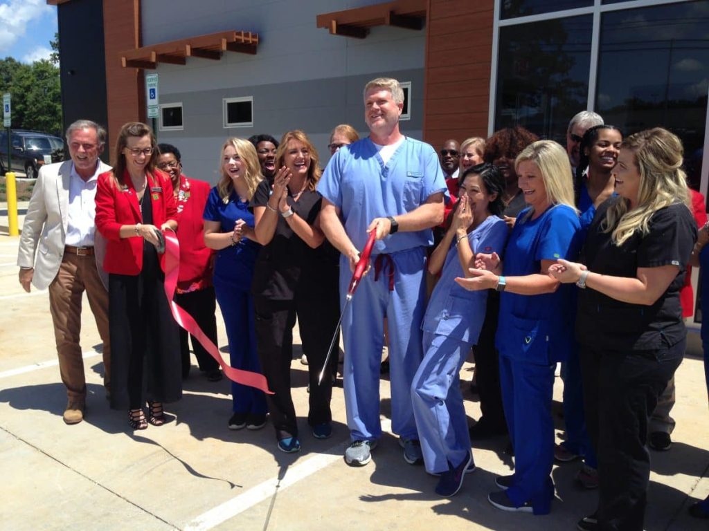 (PHOTO: Dr. Mark Holifield, center, cuts the ribbon at Complete Dental Care, 2064 S. Highland Avenue)
