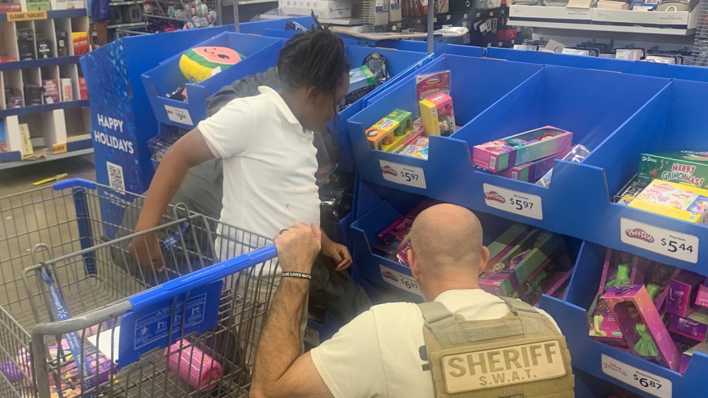 (PHOTOS: Children shop with area officers at Walmart – courtesy Gary Benton)