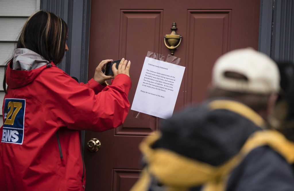 The mood was decidedly different Thursday inside the Coleman home, where in the afternoon a typed notice appeared on the front door saying the family appreciated the “concern being expressed at the joyful news that Caity, Josh and our grandchildren have been released after five long years of captivity.”