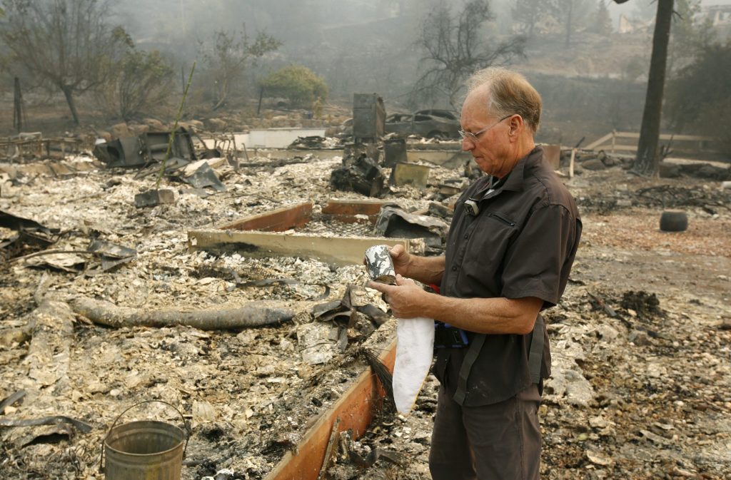 NAPA, Calif. (AP) — Mike Rippey stood among pieces of metal, porcelain and other remnants of the California home where his 100-year-old father and 98-year-old mother had died in the raging wine country wildfires.