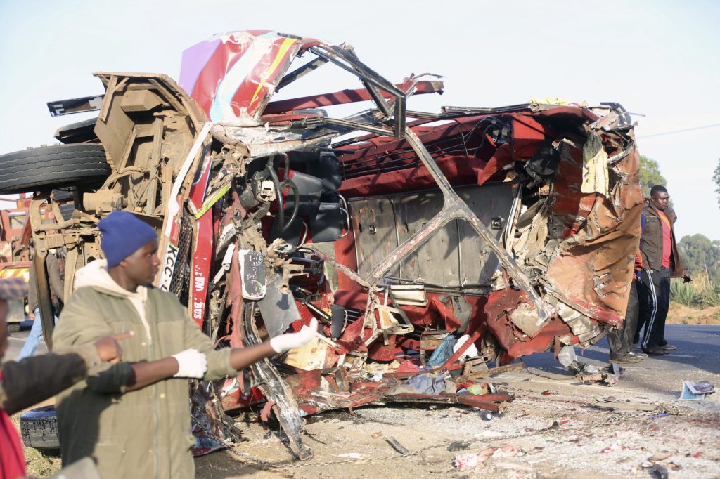 NAIROBI, Kenya (AP) — A police official says a collision between a truck and a bus in western Kenya has killed at least 36 people.