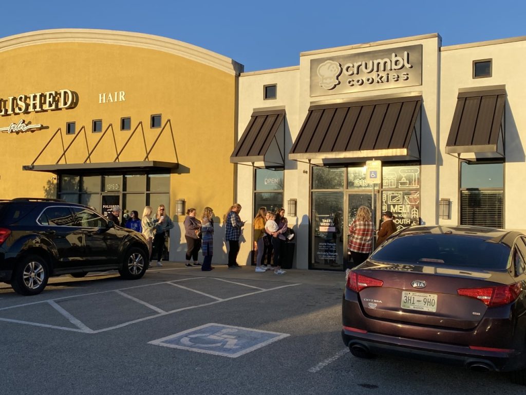 Customers continue to stand in line at Crumbl Cookies in Thomsen Farms