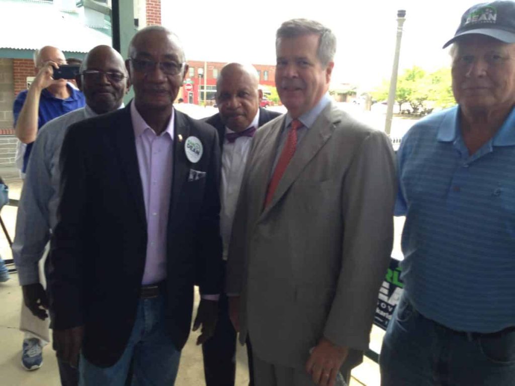 (PHOTO: Karl Dean, Democratic candidate for governor of Tennessee, center, is pictured with Johnny Shaw, state representative Bolivar, left, and Southwest Tennessee Development DirectorSWTDDÂ Executive Director Joe Barker right)