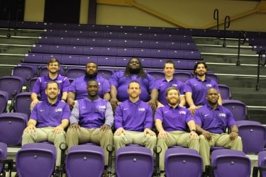 (PHOTO: Bethel coaches – front row, left to right – Kevin Wewers, Jonathan Wallace, Head Coach Brent Dearmon, Morgan Cruce, Chris Springer. Back row, left to right – Bradley Baines, Richard Hutchings, Michael Jasper, Luke Roth, Dustin Kincaid – courtesy Bethel University sports information department)