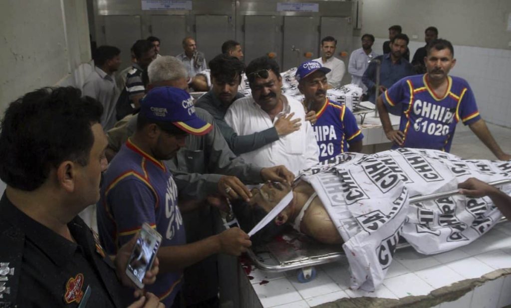 . Another 12 people were killed in a suicide car bombing near the office of the provincial police chief in the southwestern city of Quetta, in an attack claimed by a breakaway Taliban faction and the Islamic State group. Four police officers were gunned down in southern city of Karachi.