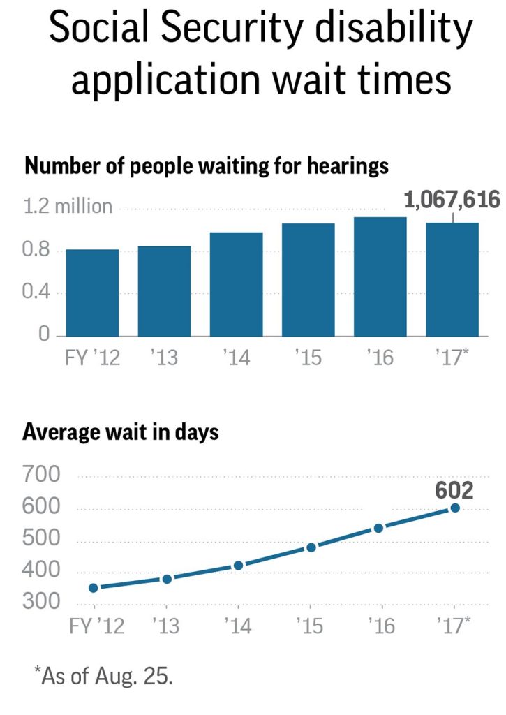 The average wait for a hearing is 602 days. Five years ago, it was less than a year.