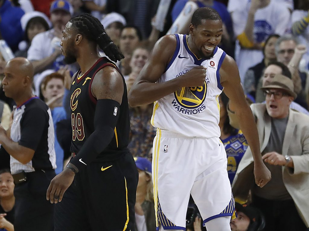 James’ 3-pointer with 10:39 left pulled Cleveland within one, but Green answered with a 3 and Andre Iguodala scored two of his nine points the next time down. In another key sequence, Durant blocked Tristan Thompson’s shot with 6:23 to go and dunked moments later.