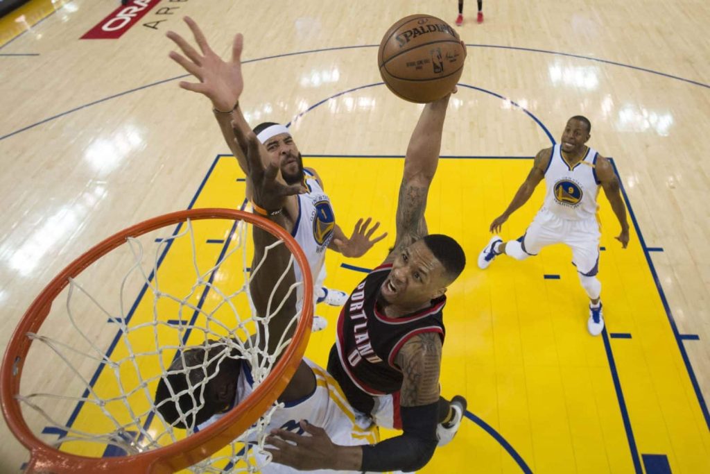 Warriors: Curry moved by Wilt Chamberlain (507) for second place on the Warriors list for career playoff field goals. … Curry hit a 3-pointer in his NBA record 59th consecutive playoff game, making his first 1:17 into the game. … Green emphatically blocked a shot by Noah Vonleh in the third as the Portland center playing in place of Nurkic was going up with one hand to dunk.