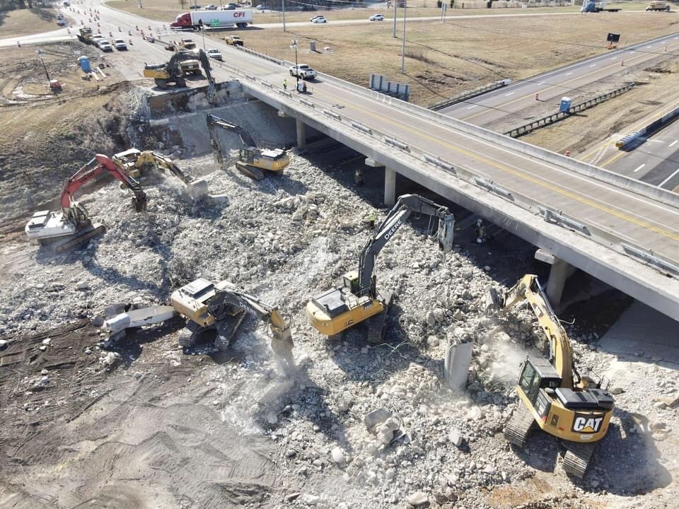 (PHOTO: Drone view of Campbell Street demolition – courtesy Tennessee Department of Transportation)