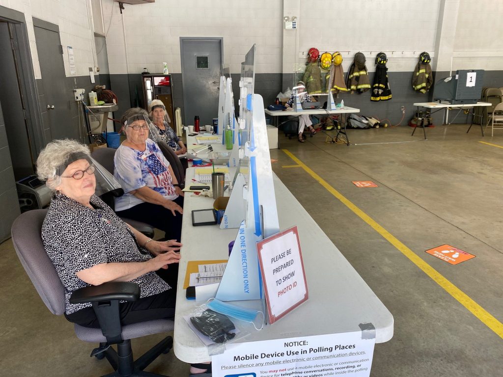 (PHOTO: Election officials at Fire Station No. 10, 319 Old Bells Road)