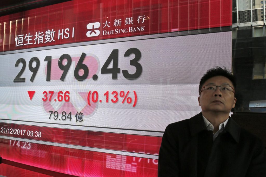 ASIA’S DAY: Japan’s benchmark Nikkei 225 lost 0.1 percent to close at 22,866.10 and South Korea’s Kospi sank 1.7 percent to 2,429.83. The Hang Seng in Hong Kong gained 0.5 percent to 29,367.06 and the Shanghai Composite advanced 0.4 percent to 3,300.06. Australia’s S&P/ASX 200 lost 0.3 percent to 6,060.40. India’s Sensex was flat at 33,791.26.
