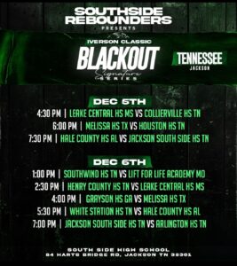 The South Side Rebounders Present the Iverson Classic Blackout Signature Series in Jackson, Tennessee. The Basketball games are being held at South Side HIgh School, 84 Harts Bridge Road on December 4 and 5, 2025.