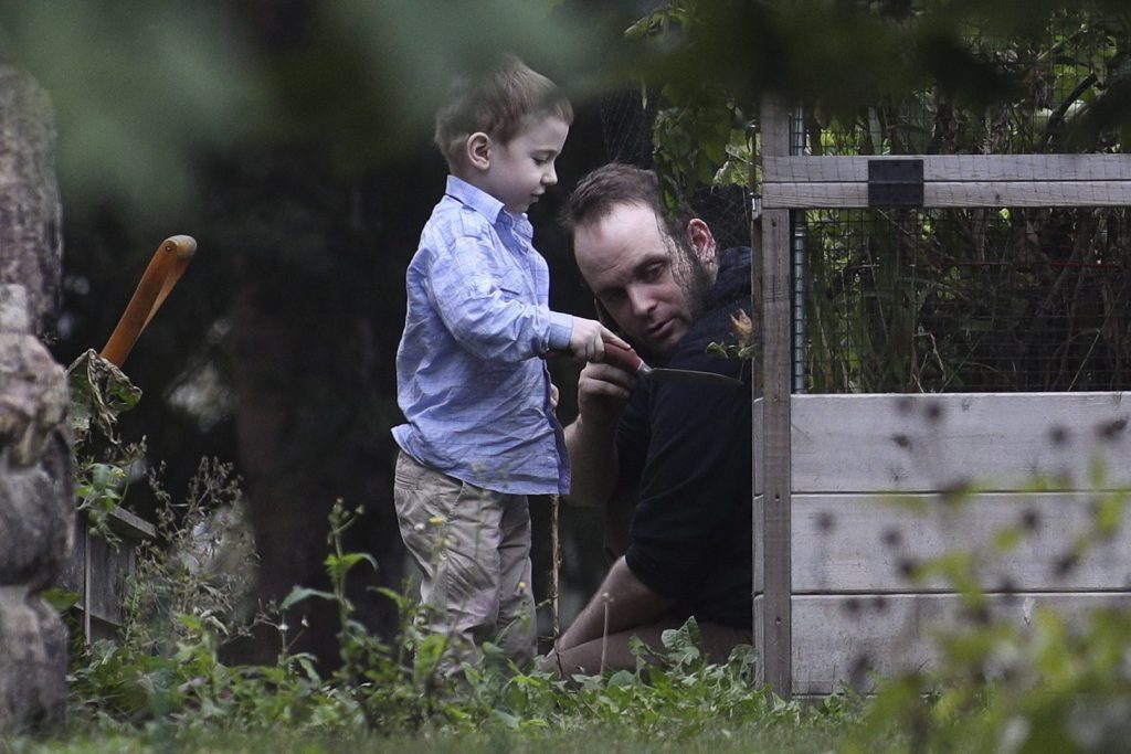 Joshua Boyle played with one of his sons in the garden of his parents’ home. The boy appeared happy and healthy, digging in the grass as his father showed off the different plants and later spoke on a cellphone.