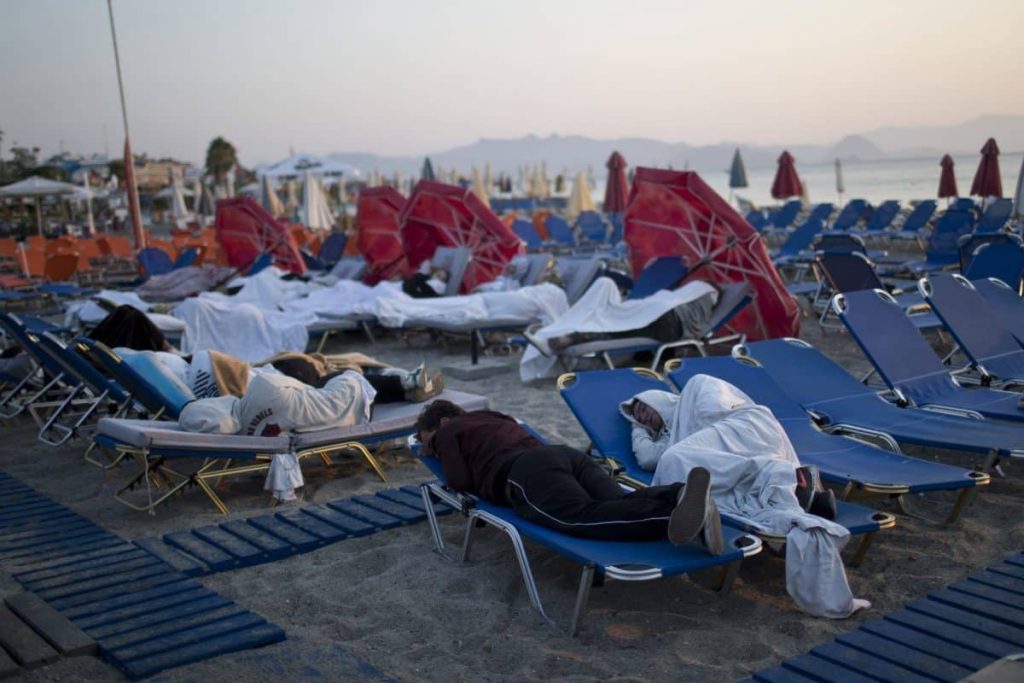 Panagiotis Bekali, a 30-year-old who has lived on Kos for several years, spent the night sleeping in an olive grove with relatives while his 5-year-old son and 16-year-old nephew slept in the family car.