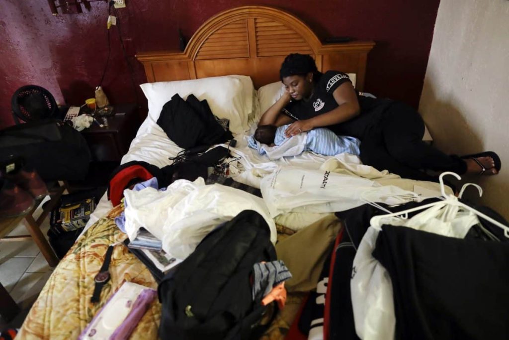 “You can’t just pick the hotel,” said D’Ona Spears, who has no way of getting her children to school when it resumes next week. “You have to go further out, further out, further out.”