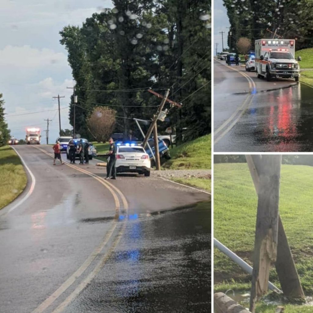 First Responders work accident after vehicle hits utility pole on Old Medina Road
