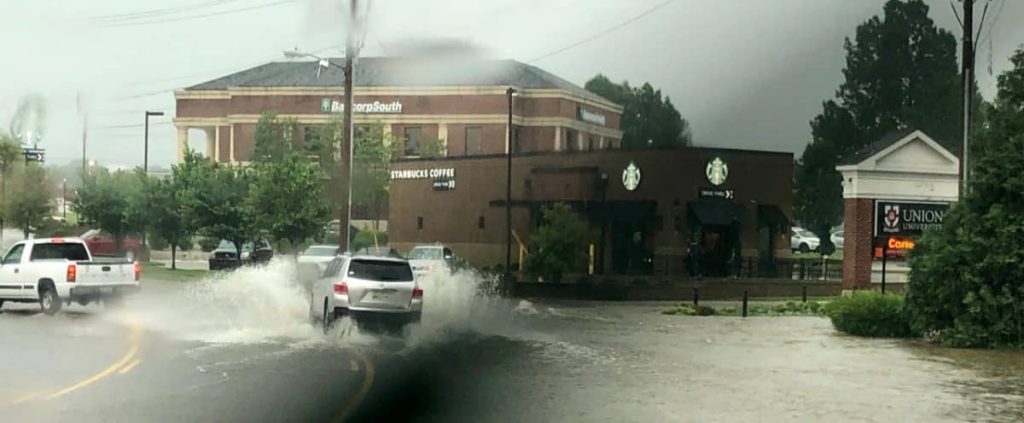 (PHOTO: Flooding on Union University Drive near Starbucks – courtesy Downtown Ricky Brown Traffic Network)