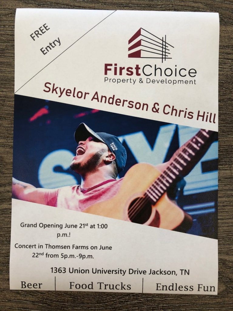 A free concert featuring Skyelor Anderson and Chris Hill will be held from 5 p.m. to 9 p.m., Saturday at Thomsen Farms, 1363 Union University Drive.