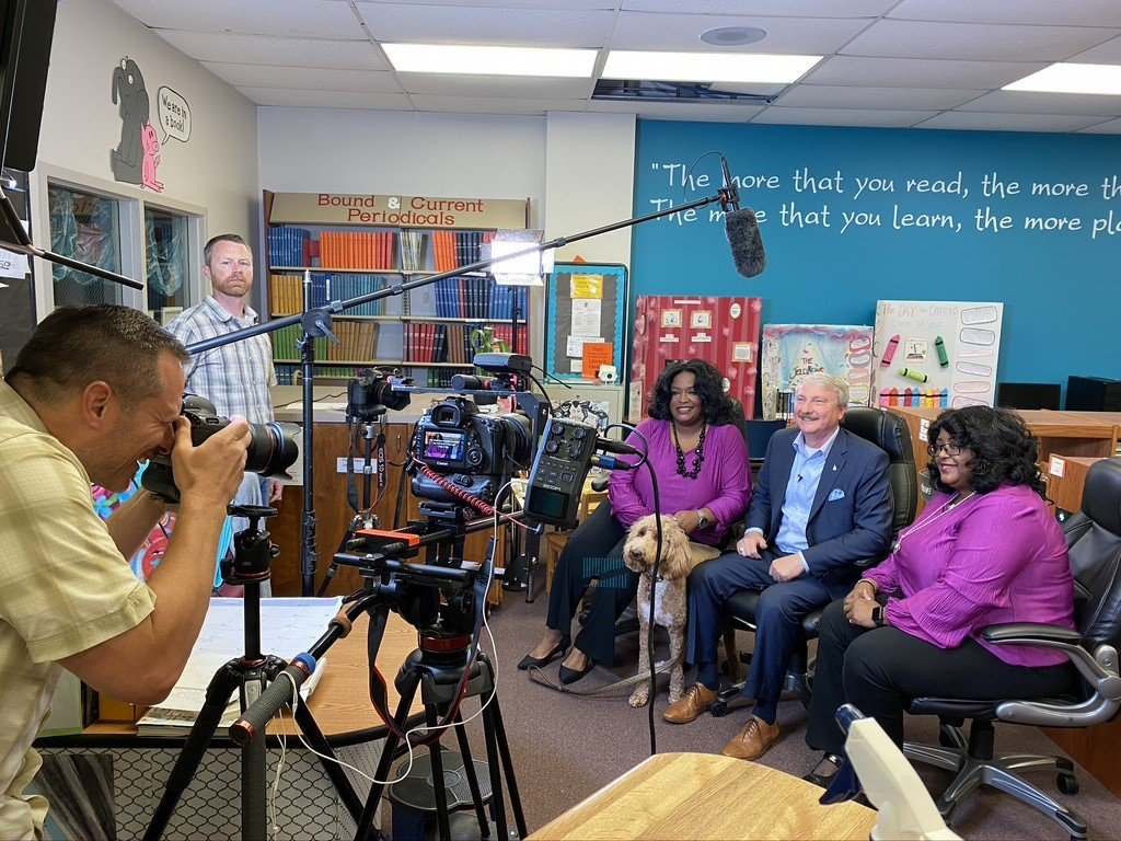 (Photo caption: FHU President David Shannon interviews Drs. Karen and Sharen Cypress for the 150th celebration video)