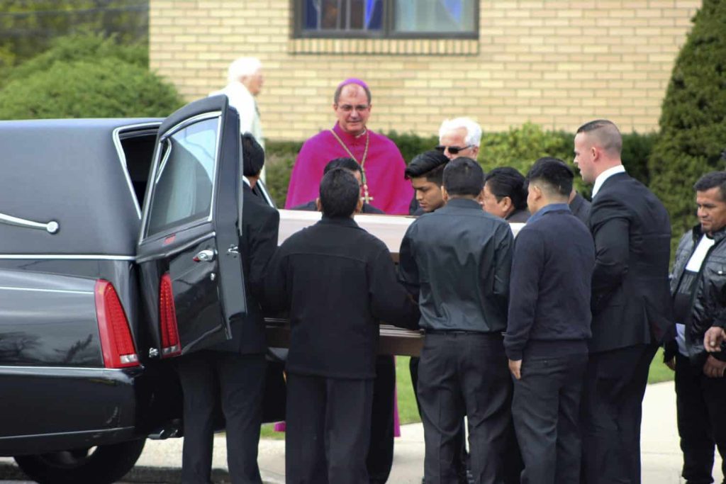 About 200 mourners, many of them young, attended the Mass on Wednesday in East Patchogue (PACH’-awg) for 16-year-old Justin Llivicura (yee-vee-KUHR’-uh).