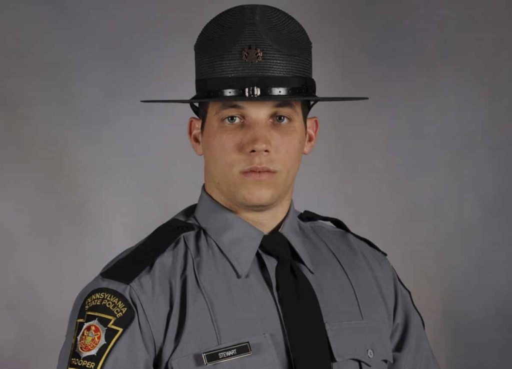 Twenty-six-year-old Trooper Michael Stewart was pronounced dead at the scene of the crash early Friday on Route 711 near Ligonier, about 50 miles (80 kilometers) southeast of Pittsburgh.