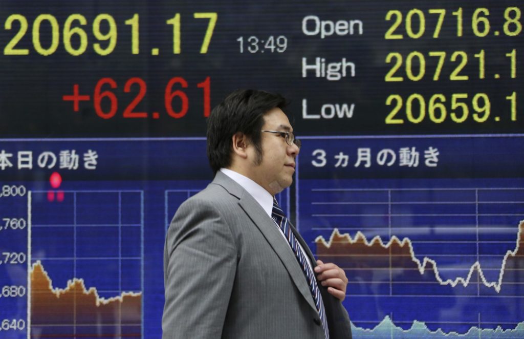 ASIA’S DAY: Japan’s Nikkei 225 index climbed 0.3 percent to 20,690.71 and the Hang Seng index in Hong Kong advanced 0.2 percent to 28,432.56. Australia’s S&P ASX/200 surged 1.0 percent to 5,710.70 and India’s Sensex jumped 0.6 percent to 31,775.92. Shares in Southeast Asia and Taiwan also were mostly higher.