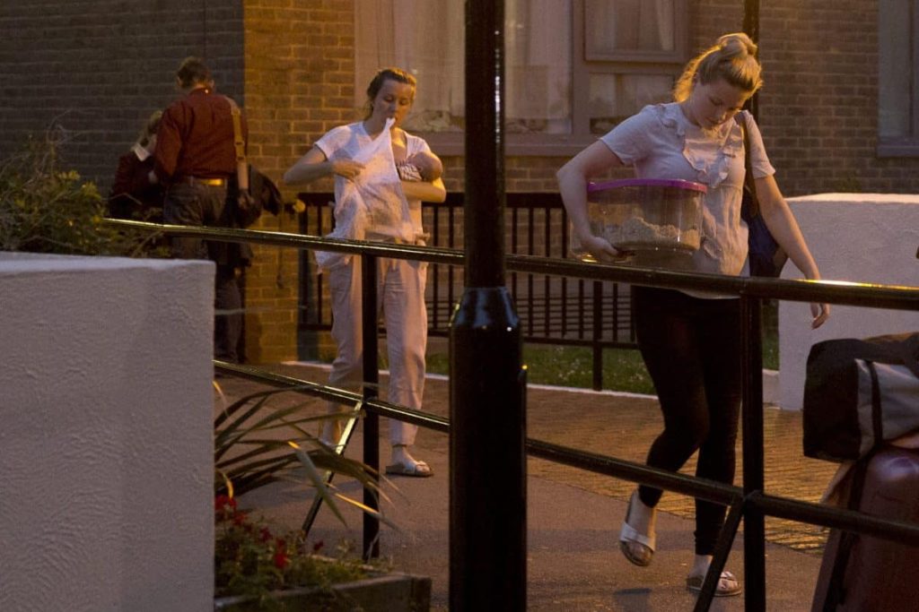 Residents trooped out of the buildings Friday night with suitcases and plastic bags stuffed with clothes as council workers guided them to a local leisure center, where some spent the night on inflatable mattresses packed into a gym. Others were being put up in hotels and other housing projects.