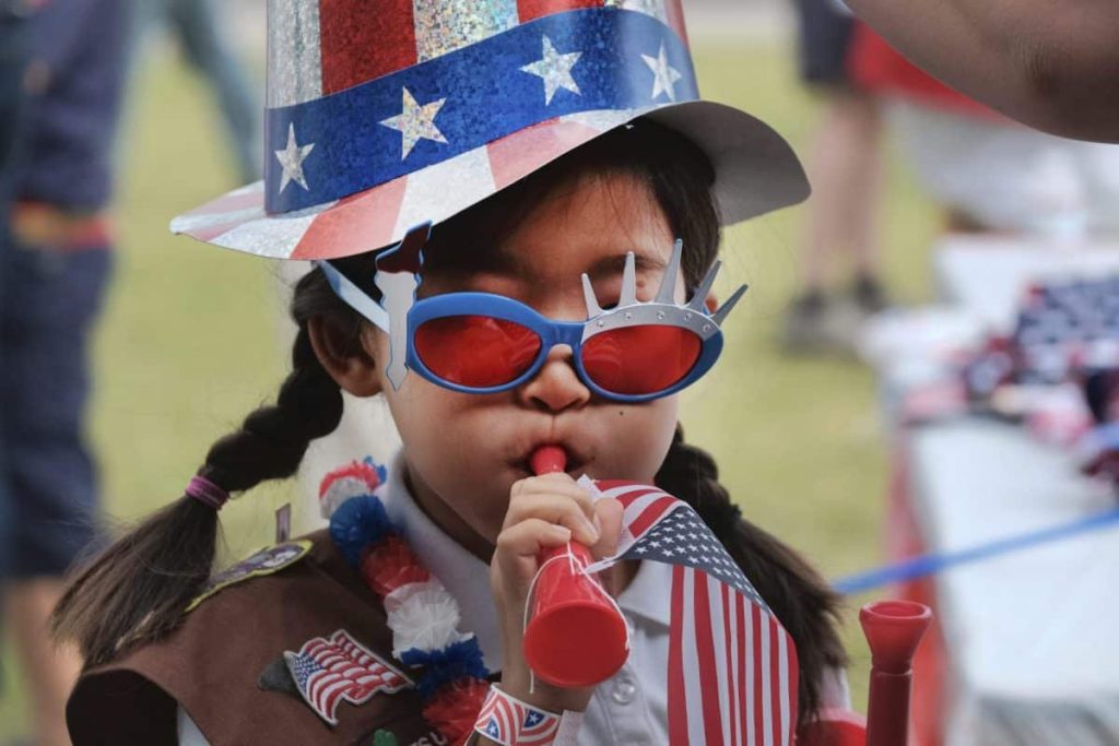 Decked out in red, white and blue, Californians waved flags and sang patriotic songs at Independence Day parades across the state.