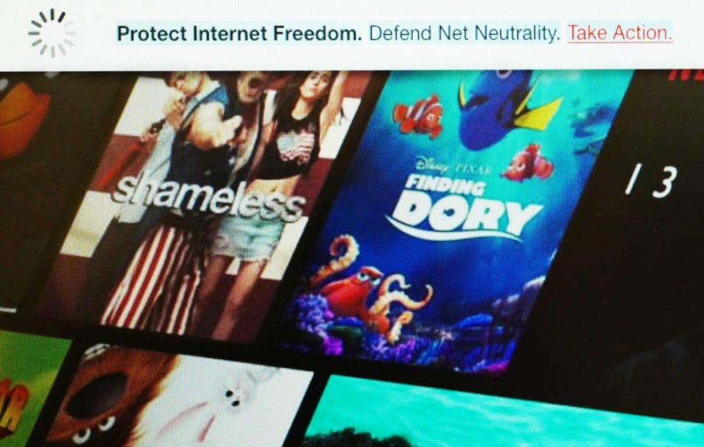 This year’s online protest is more muted. Netflix put a gray banner at the top of its home page and is tweeting out “gif” animations in support. Amazon’s website has a small square inviting users to “learn more.” Twitter is promoting “net neutrality” as the top trending topic in the U.S. Google tweeted a blog post. Smaller tech companies including Airbnb and Etsy have fat banners on their home pages.